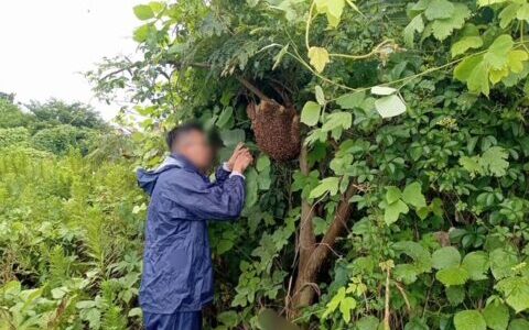 土が田んぼに崩れるのを防ぐための擁壁を作っております。