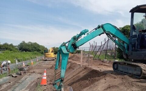 土木作業員による川沿いの木の伐採を行いました。
