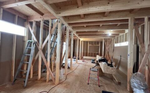 大工工事も仕上げに入っております。