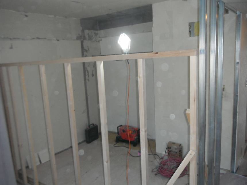 インターホンやスイッチなどすべて位置を変更して、壁を壊して行きます。