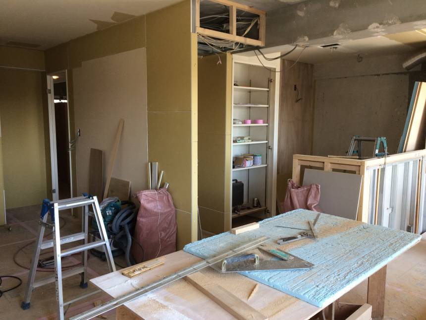 玄関のドマ部分の空間ができてきました\(^o^)/ リビングの工事風景です。