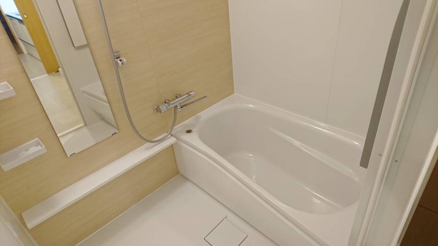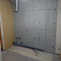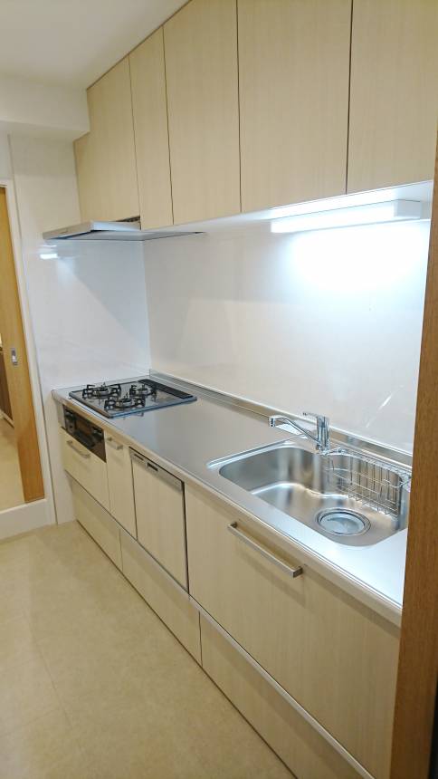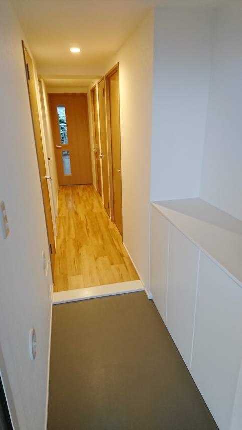 床にフロアタイルを貼り、壁の一部にアクセントクロスを取り…