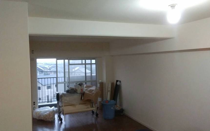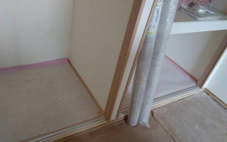 床にフロアタイルを貼り、壁の一部にアクセントクロスを取り…