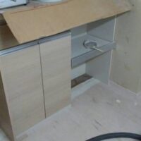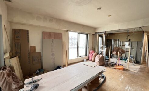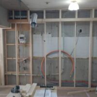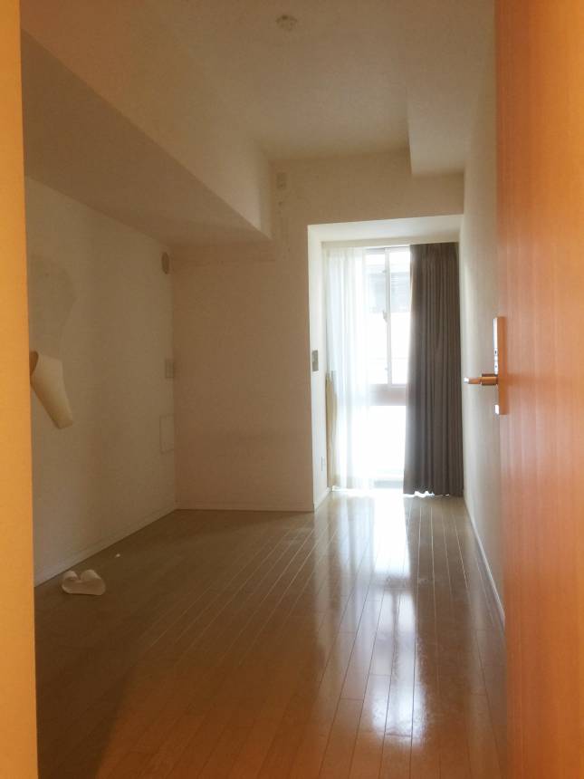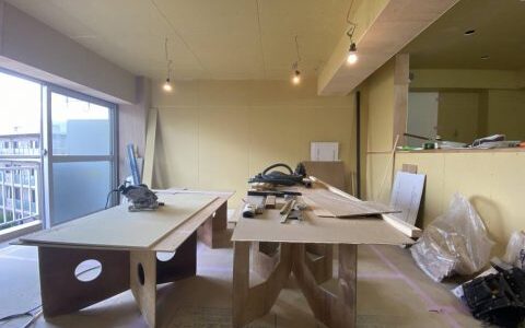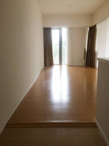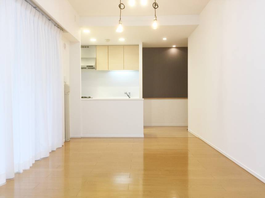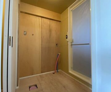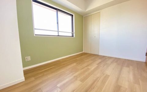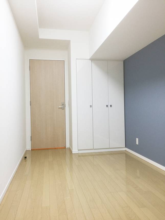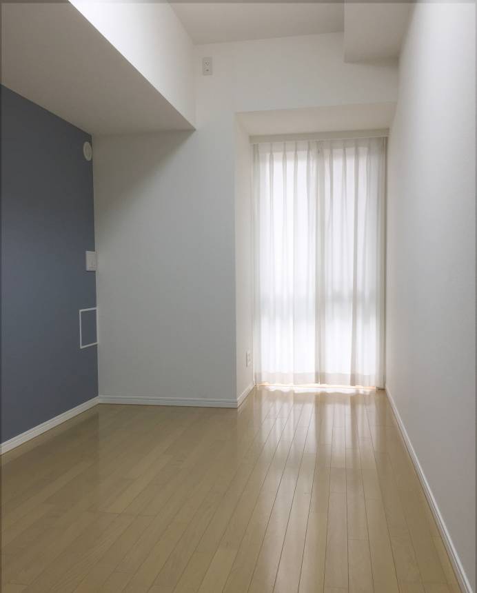 床にフロアタイルを貼り、壁の一部にアクセントクロスを取り…