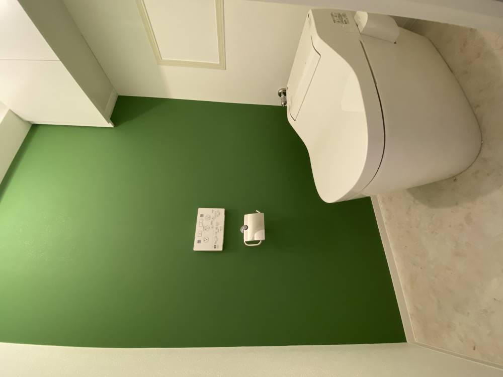 床にフロアタイルを貼り、壁の一部にアクセントクロスを取り…