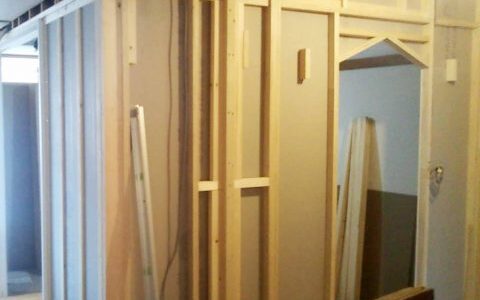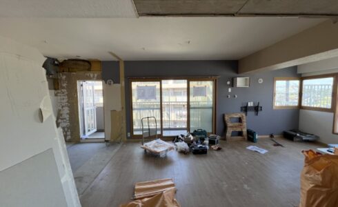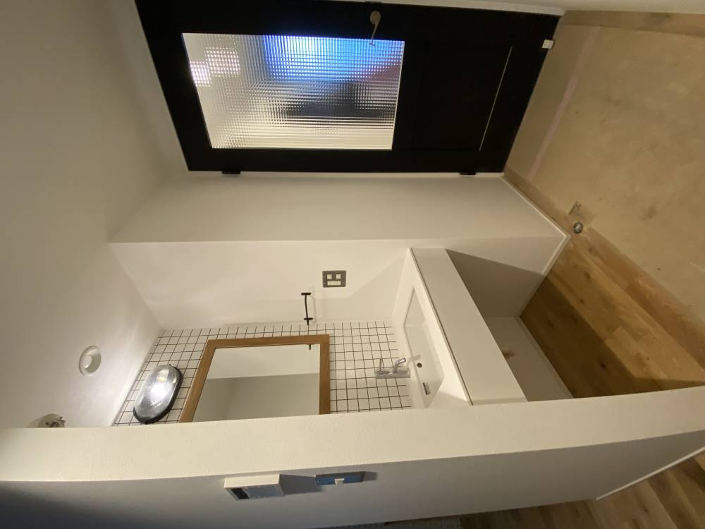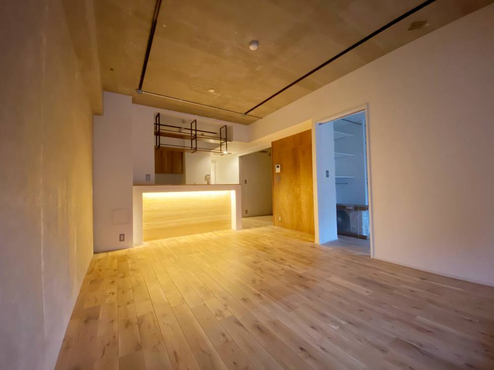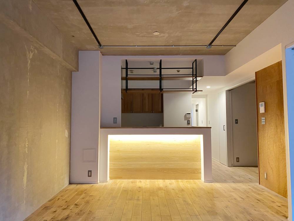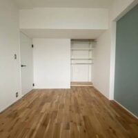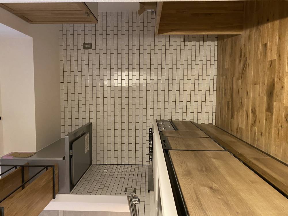床にフロアタイルを貼り、壁の一部にアクセントクロスを取り…