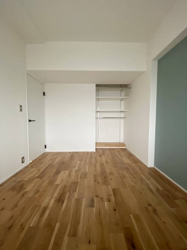 床にフロアタイルを貼り、壁の一部にアクセントクロスを取り…
