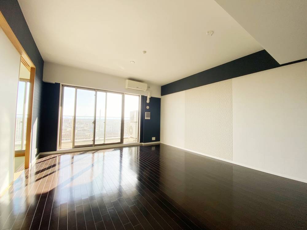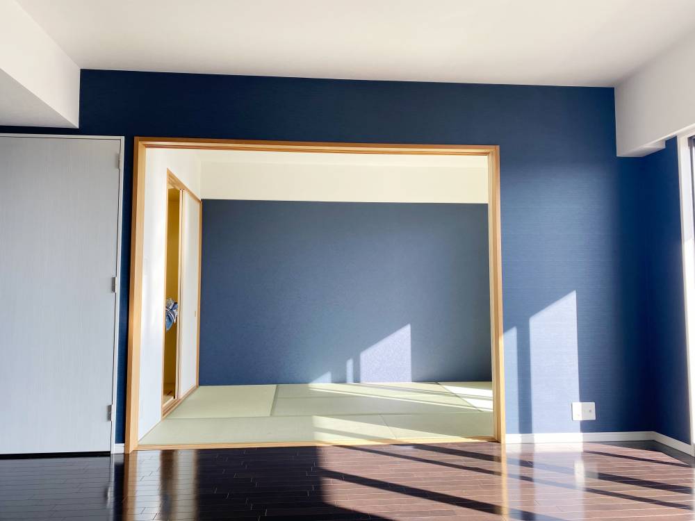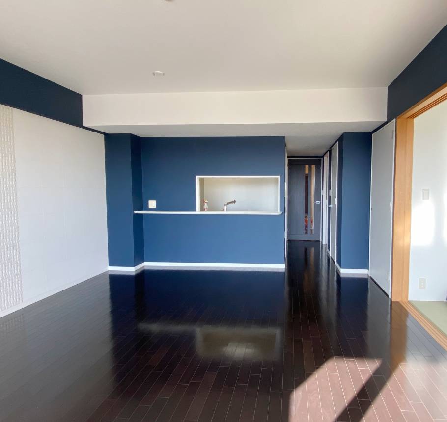 床にフロアタイルを貼り、壁の一部にアクセントクロスを取り…