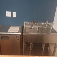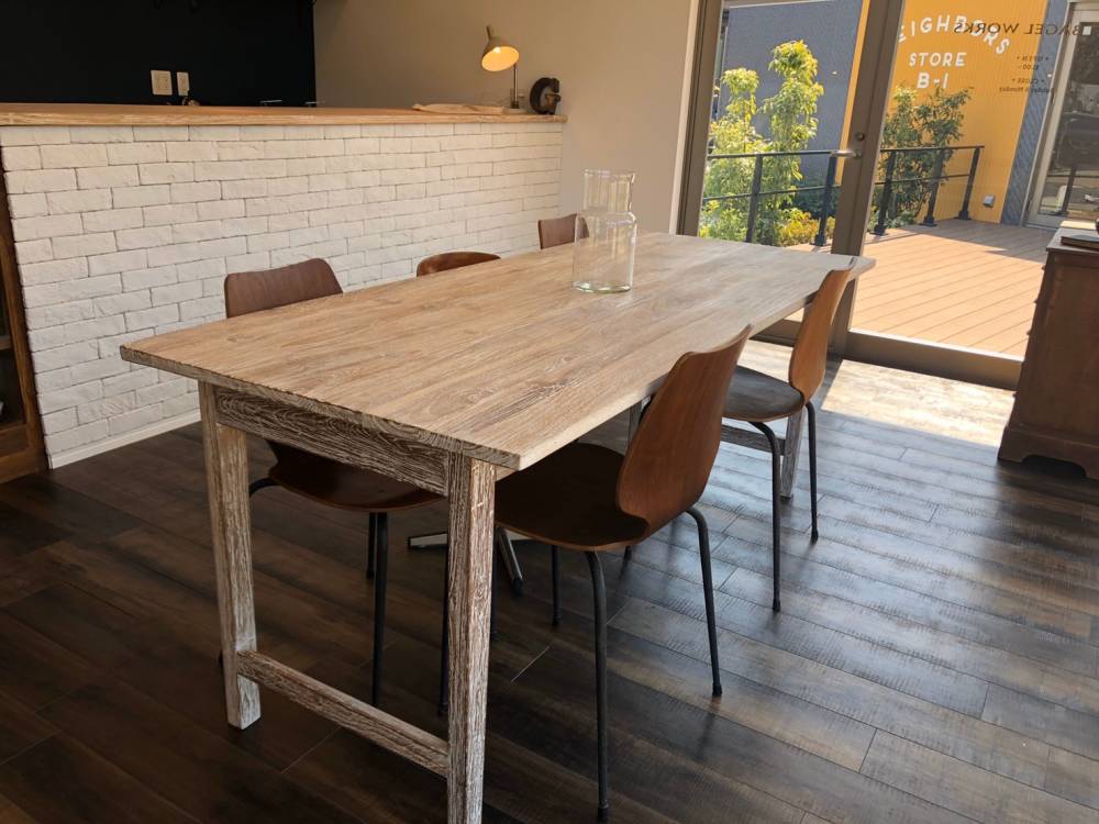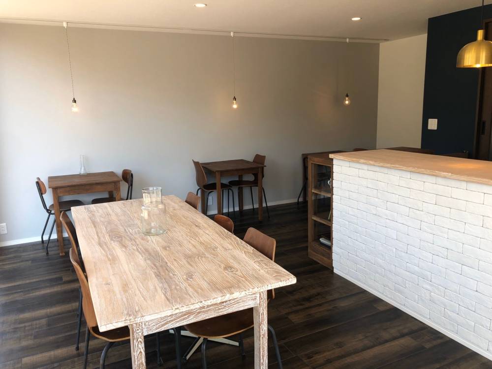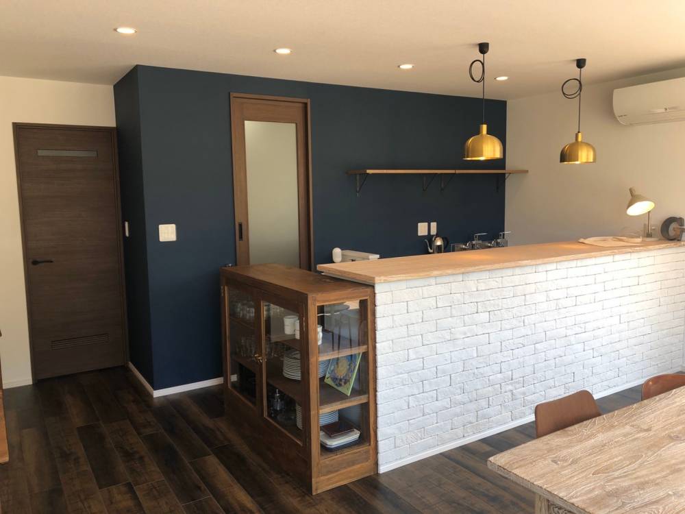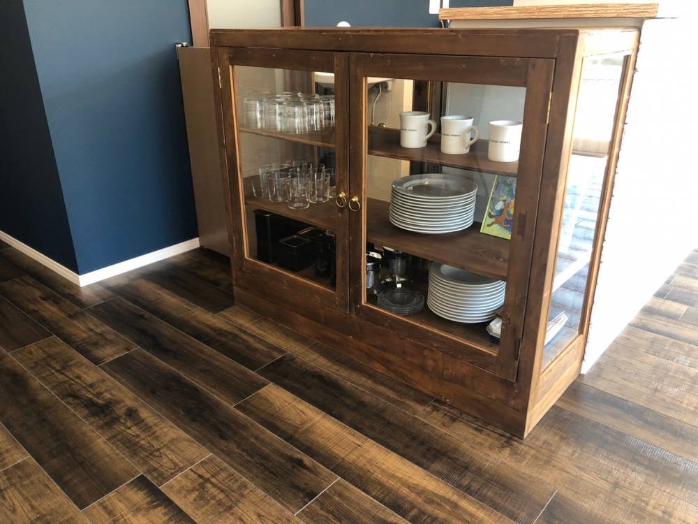 床にフロアタイルを貼り、壁の一部にアクセントクロスを取り…