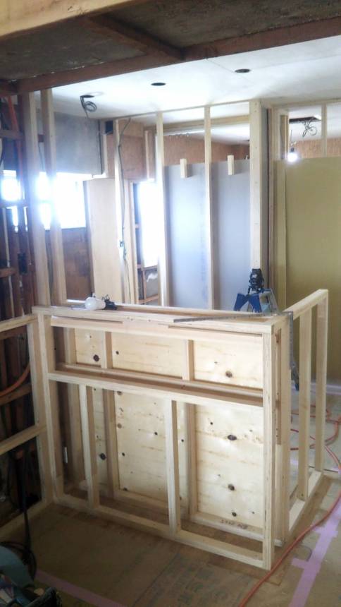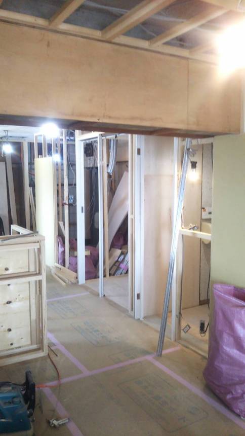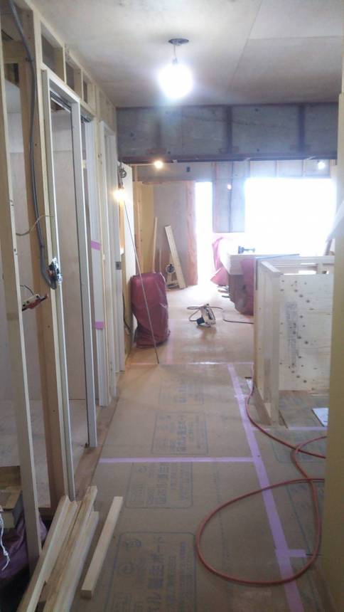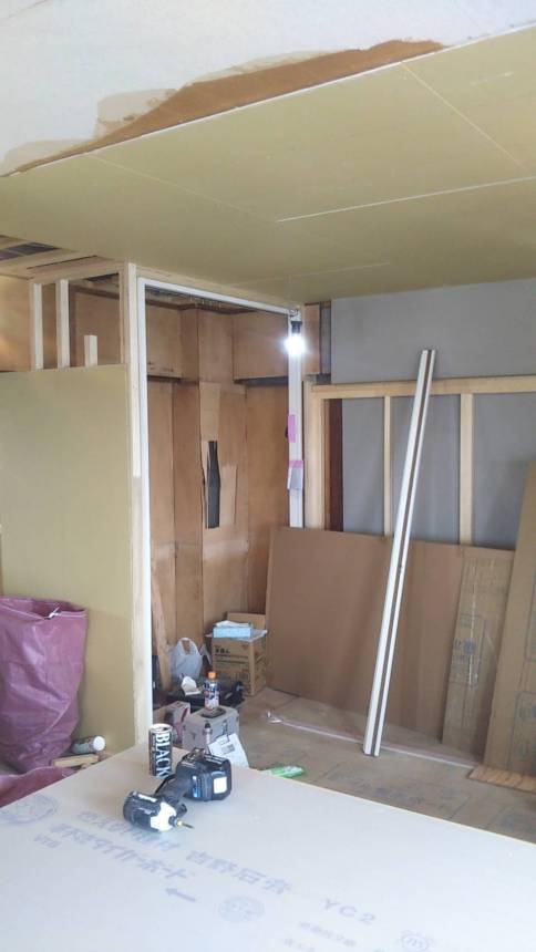 床にフロアタイルを貼り、壁の一部にアクセントクロスを取り…