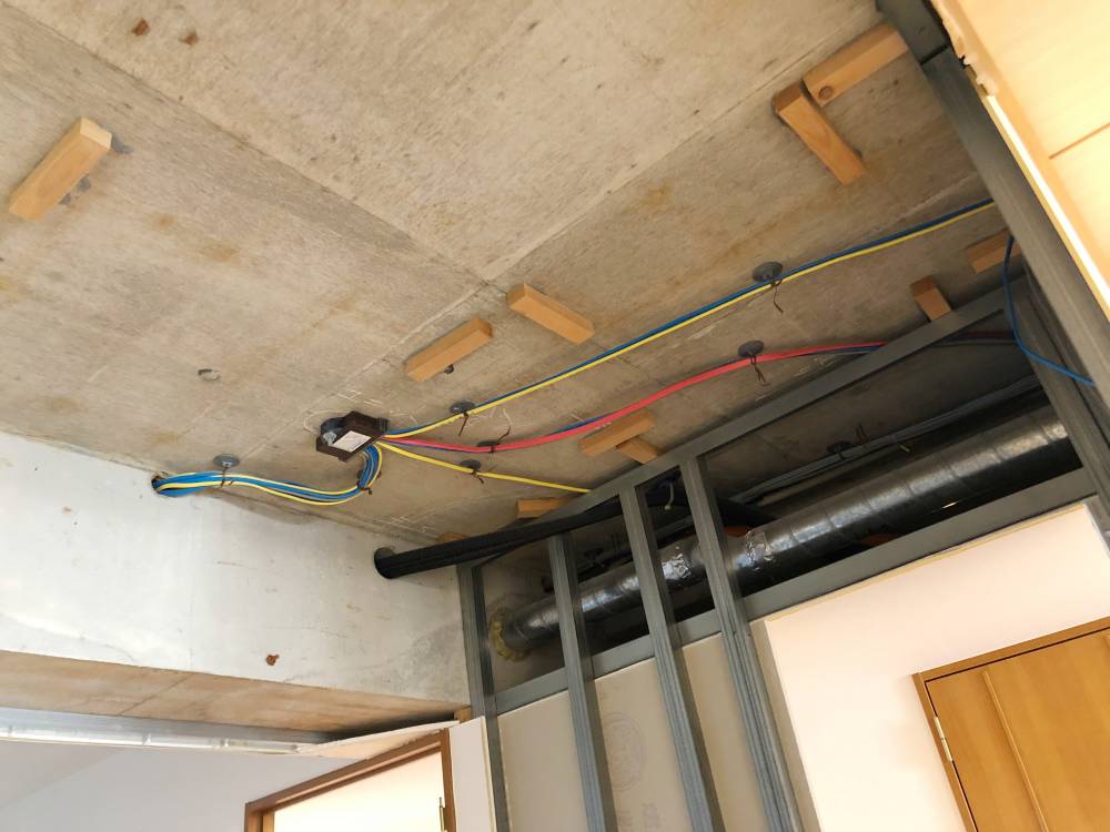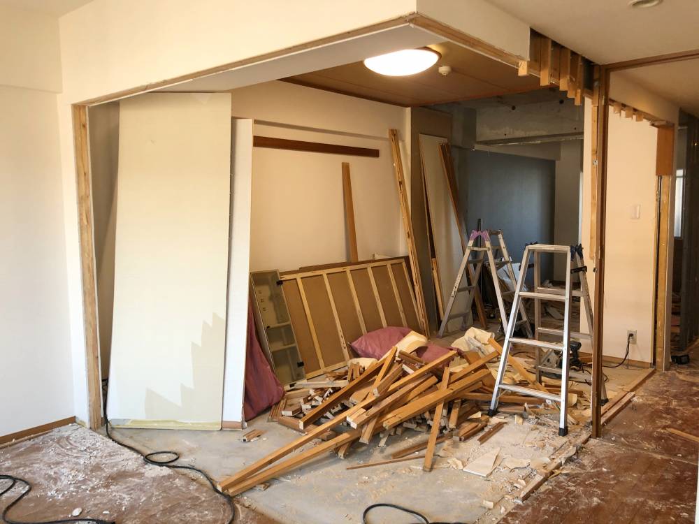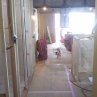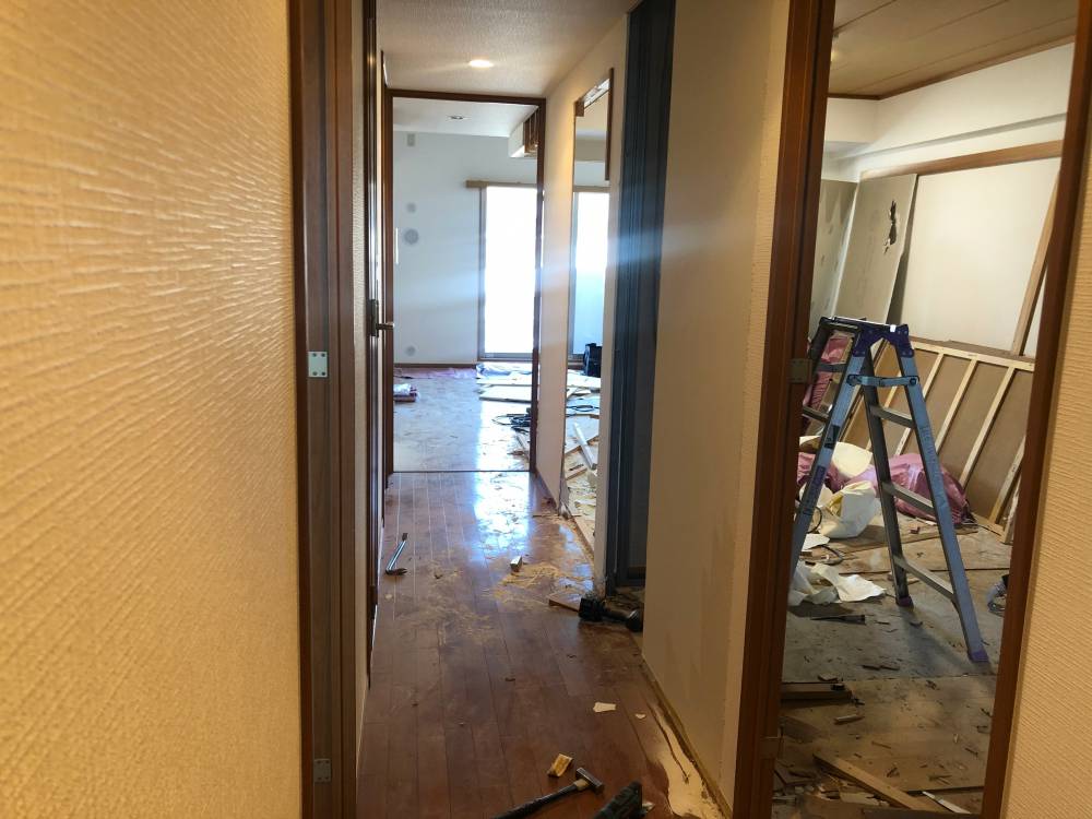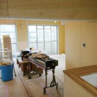 床にフロアタイルを貼り、壁の一部にアクセントクロスを取り…