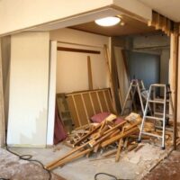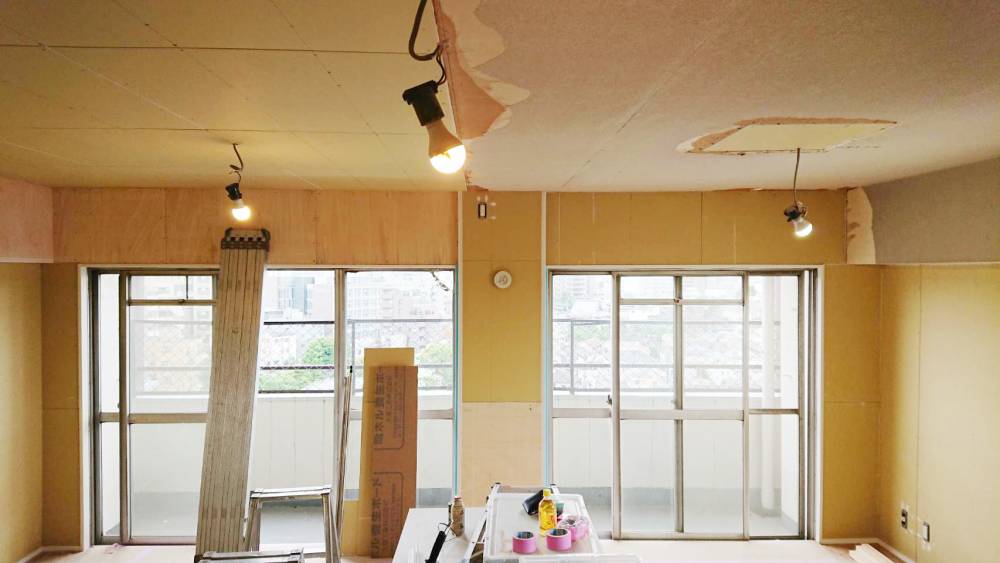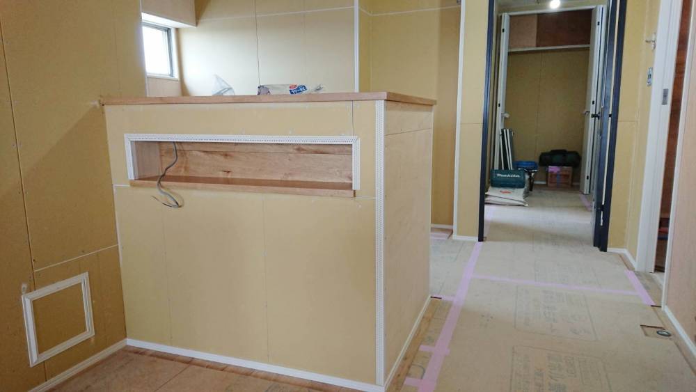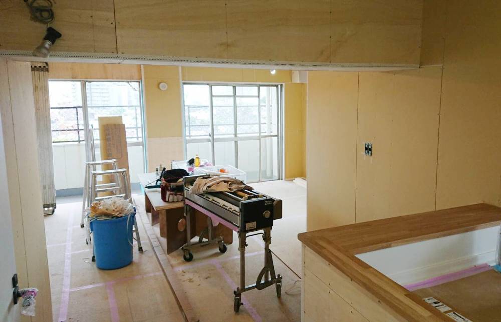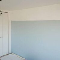 床にフロアタイルを貼り、壁の一部にアクセントクロスを取り…