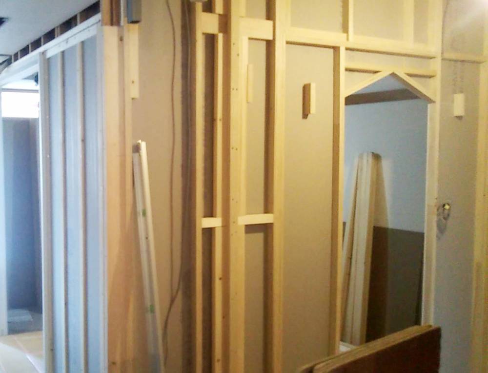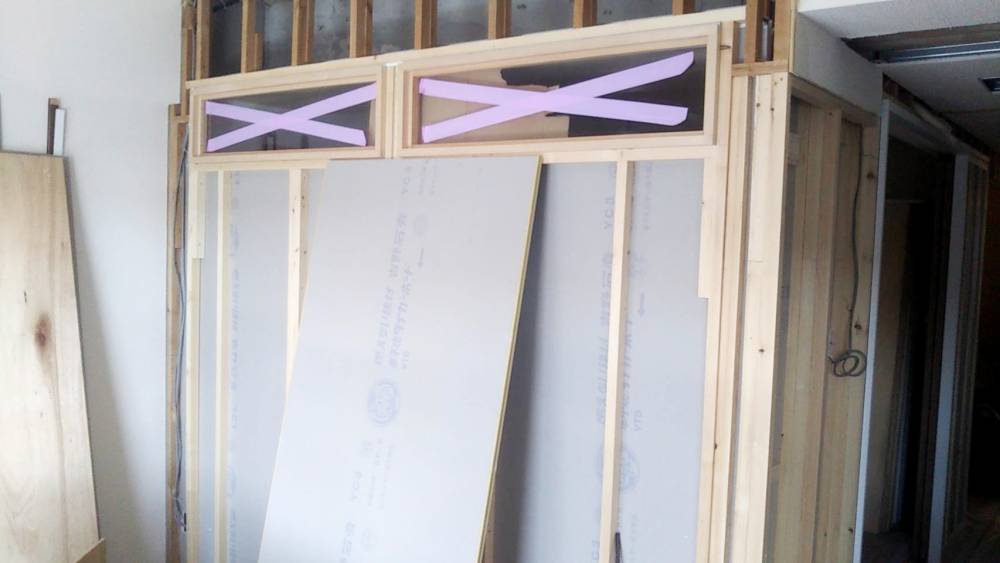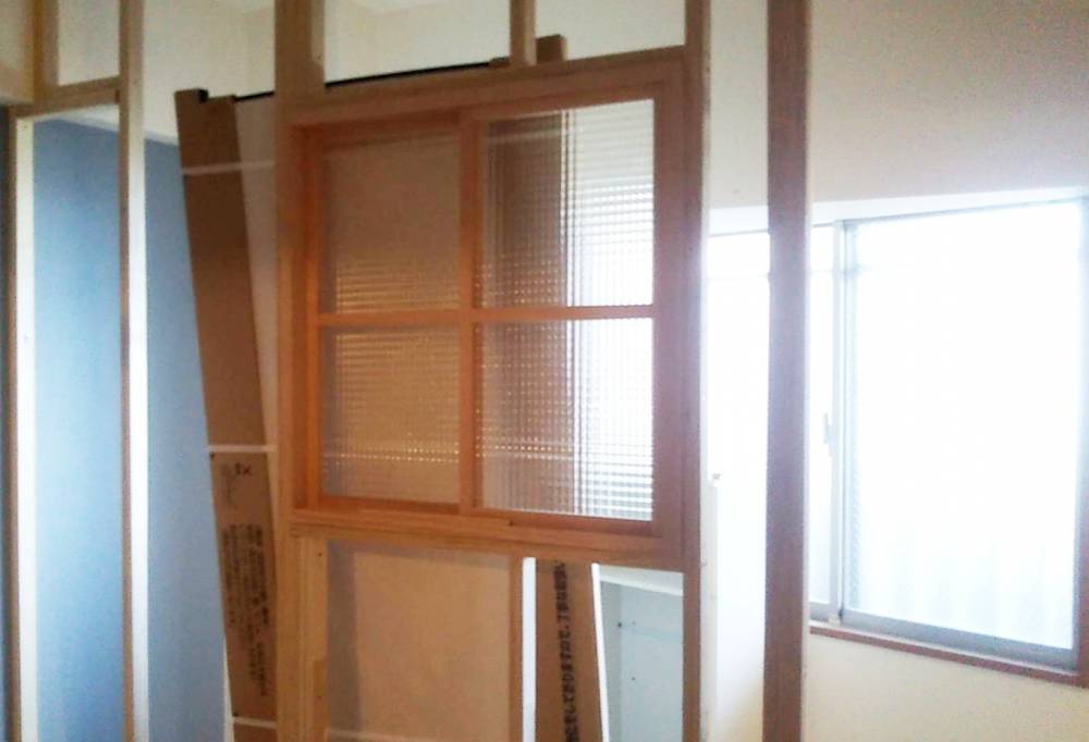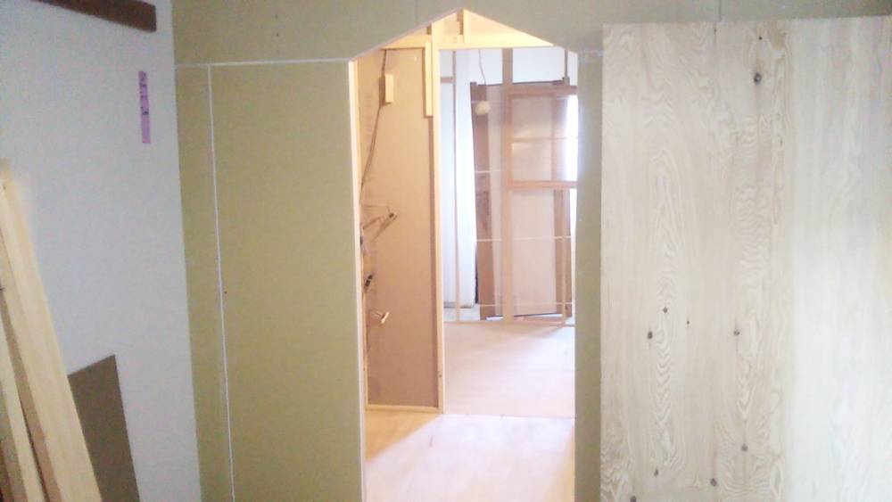 床にフロアタイルを貼り、壁の一部にアクセントクロスを取り…