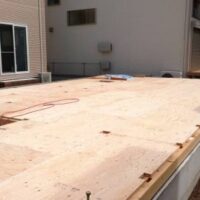 床にフロアタイルを貼り、壁の一部にアクセントクロスを取り…