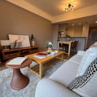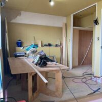 床にフロアタイルを貼り、壁の一部にアクセントクロスを取り…