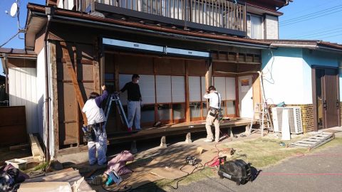築年数の経過により、木製の部分が劣化した雨戸の戸袋補修。