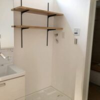 床にフロアタイルを貼り、壁の一部にアクセントクロスを取り…