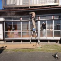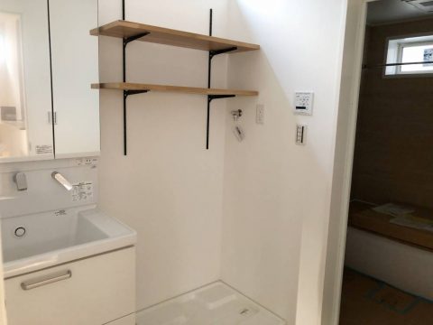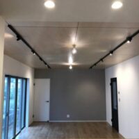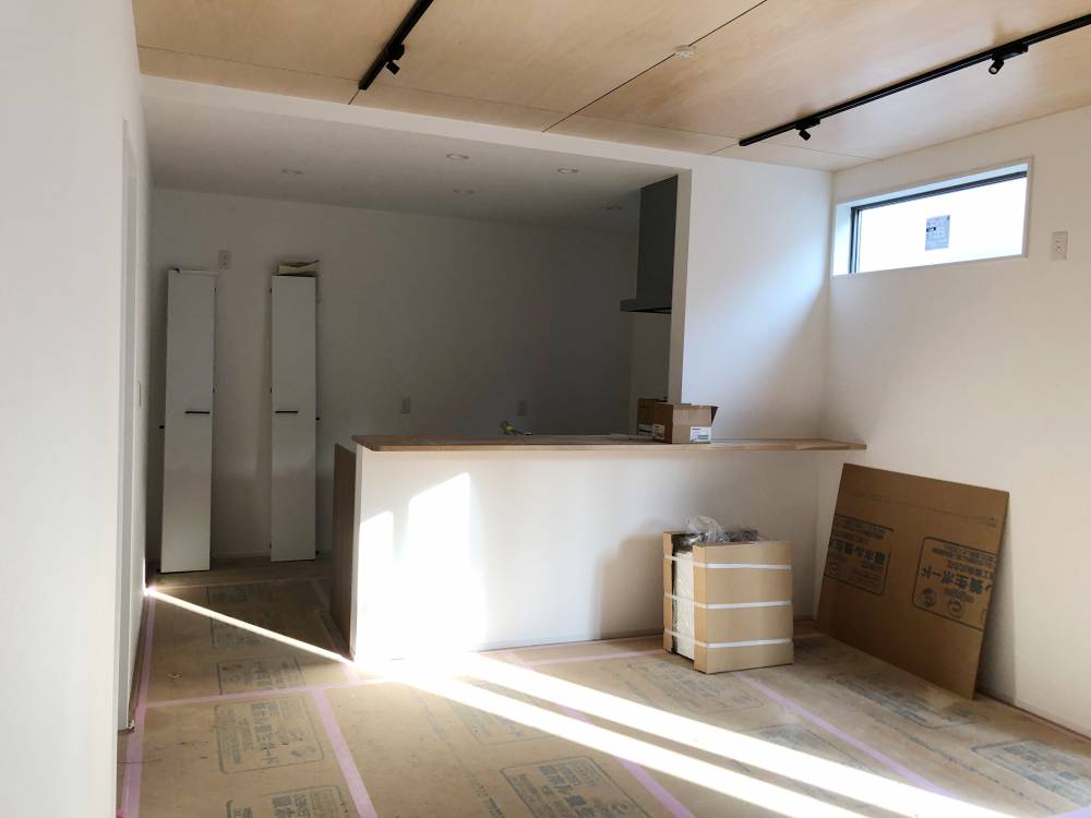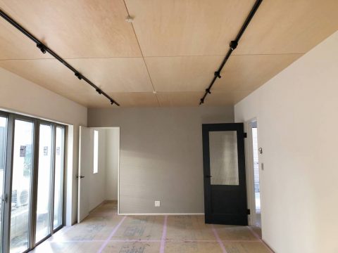 床にフロアタイルを貼り、壁の一部にアクセントクロスを取り…