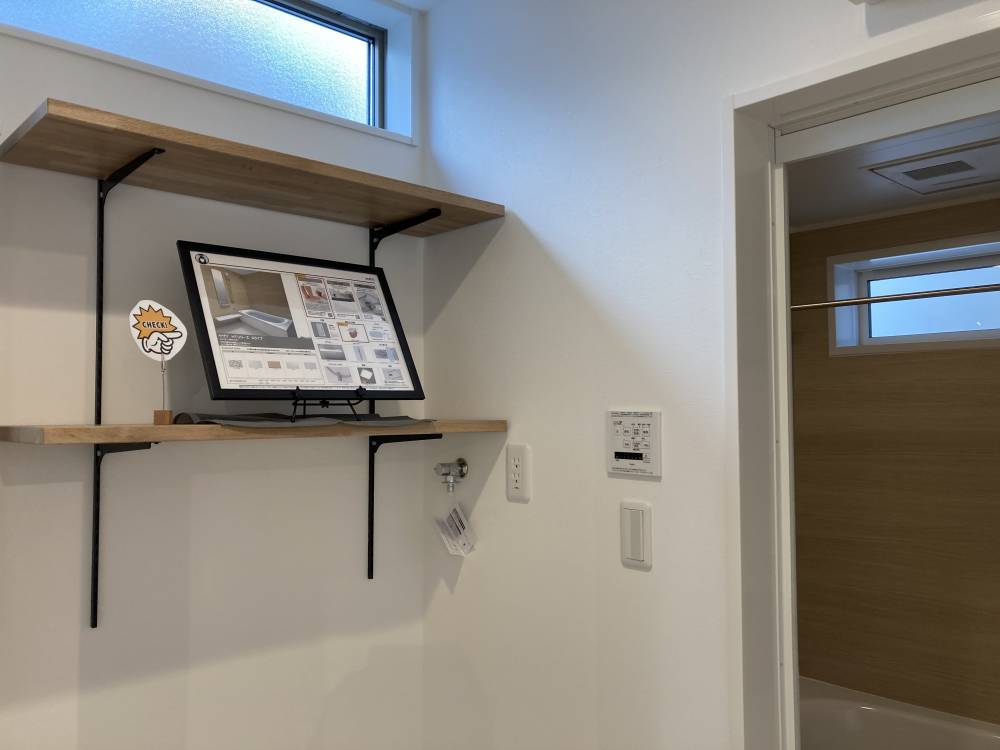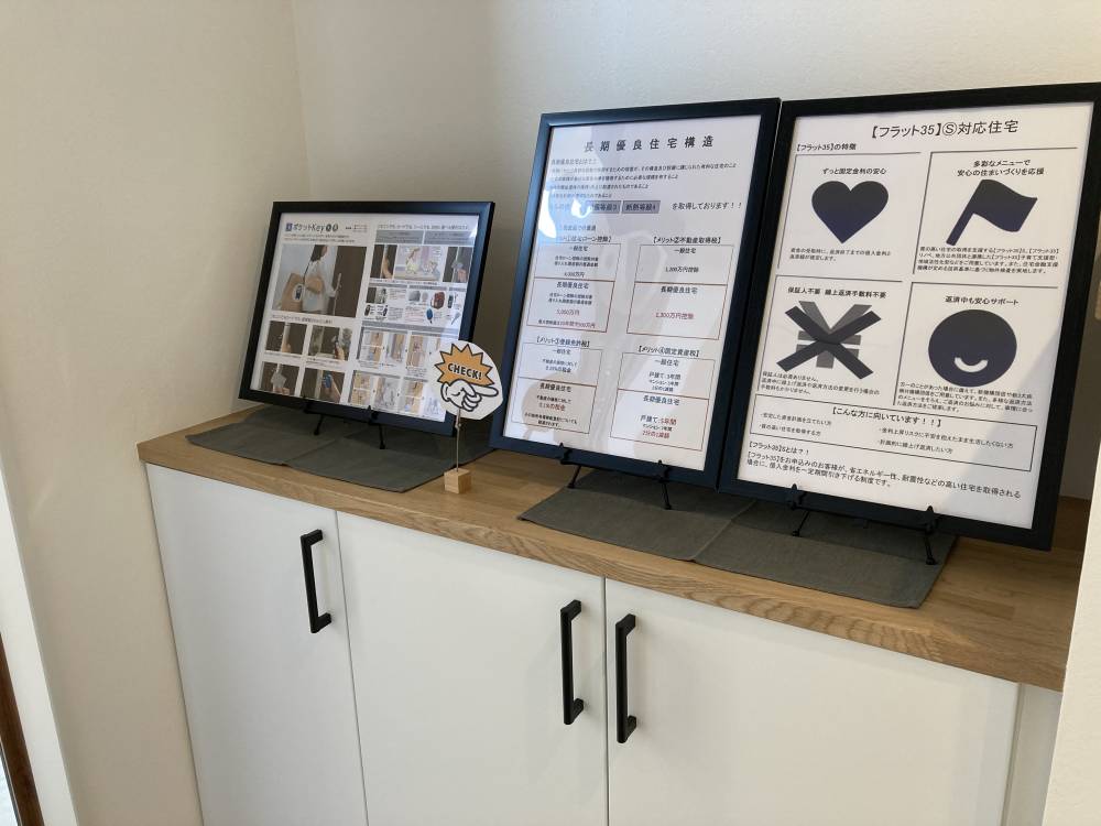 蓮田市の新築現場ですが、パネルを使用して各所のご案内をしております。
