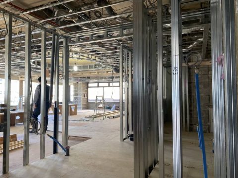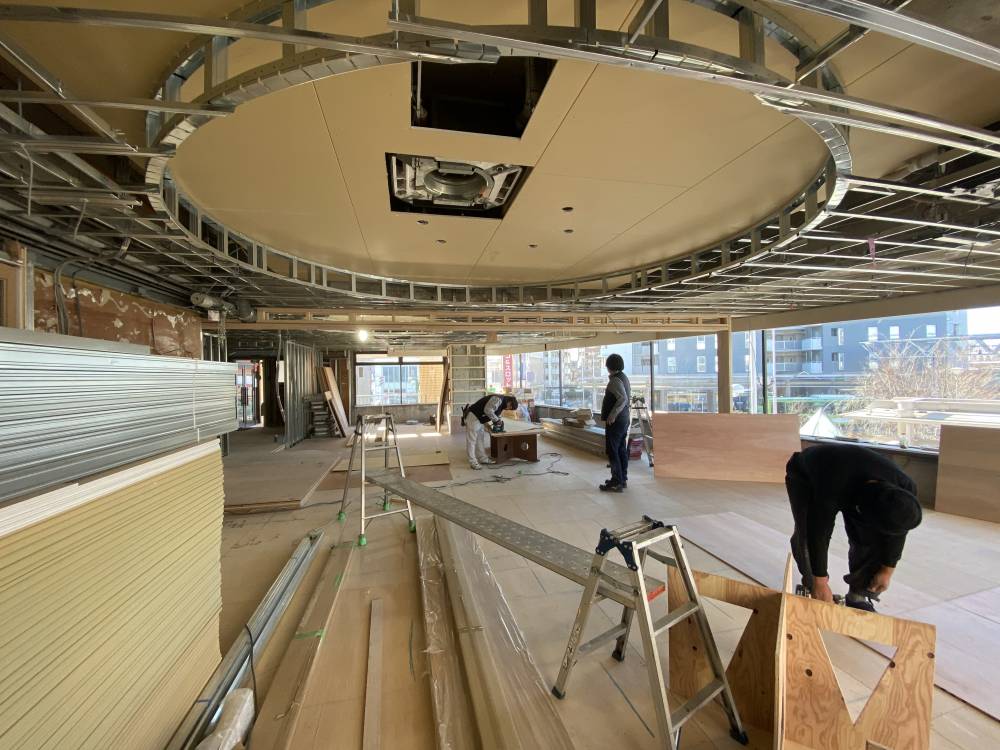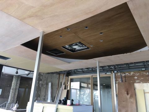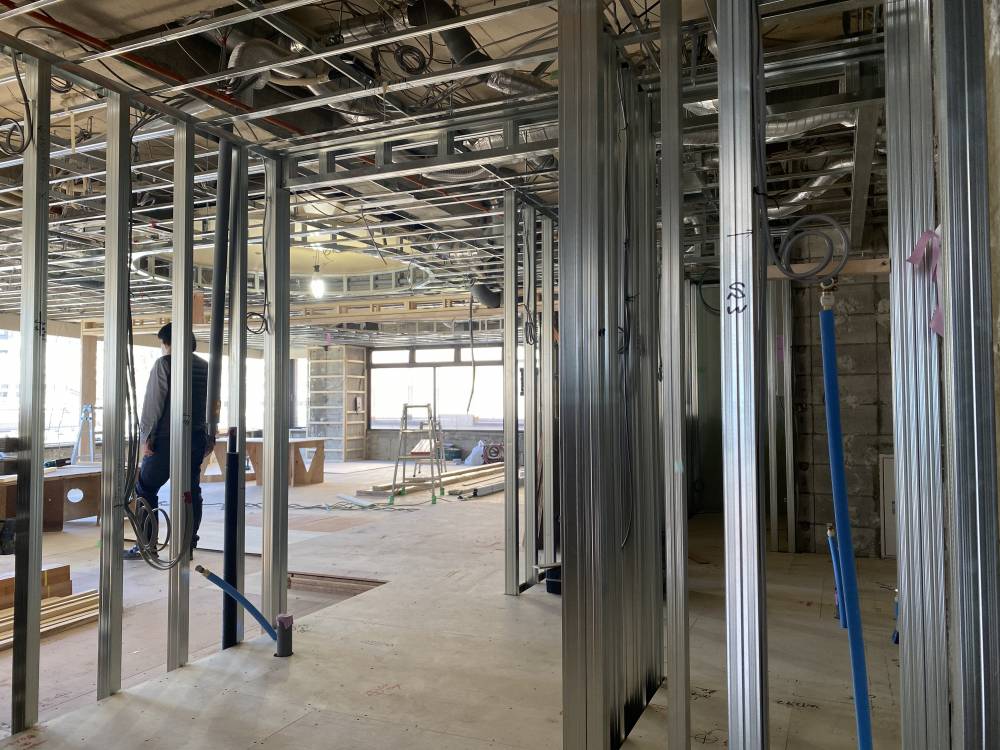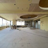 床にフロアタイルを貼り、壁の一部にアクセントクロスを取り…