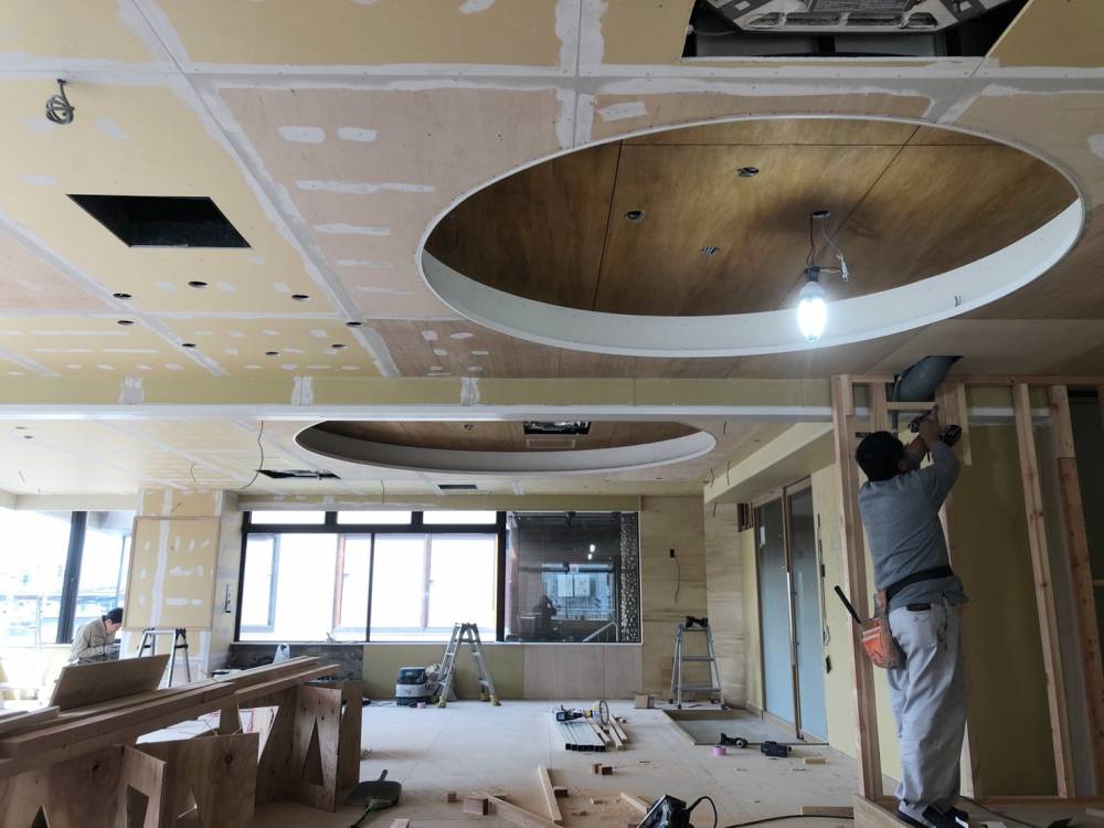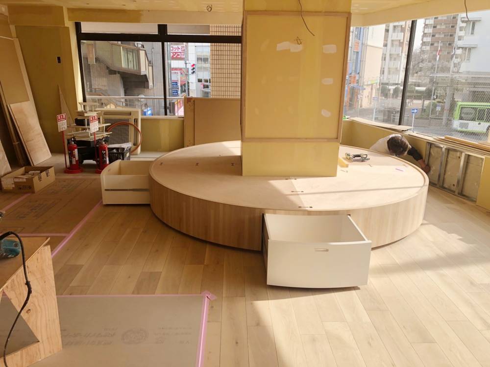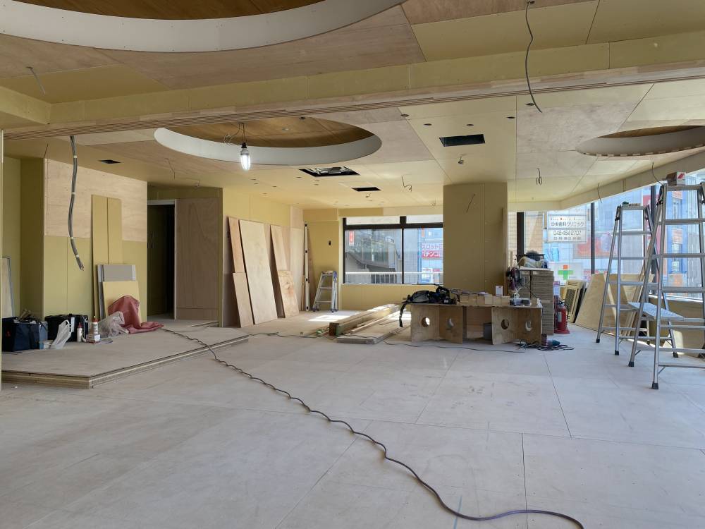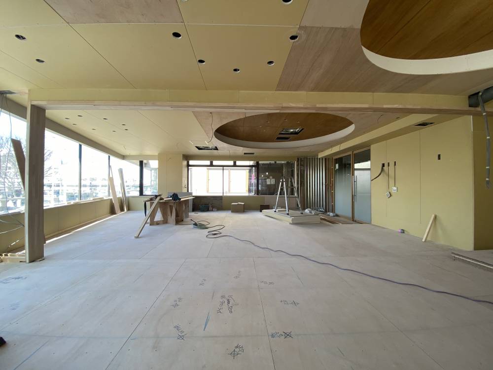 床にフロアタイルを貼り、壁の一部にアクセントクロスを取り…