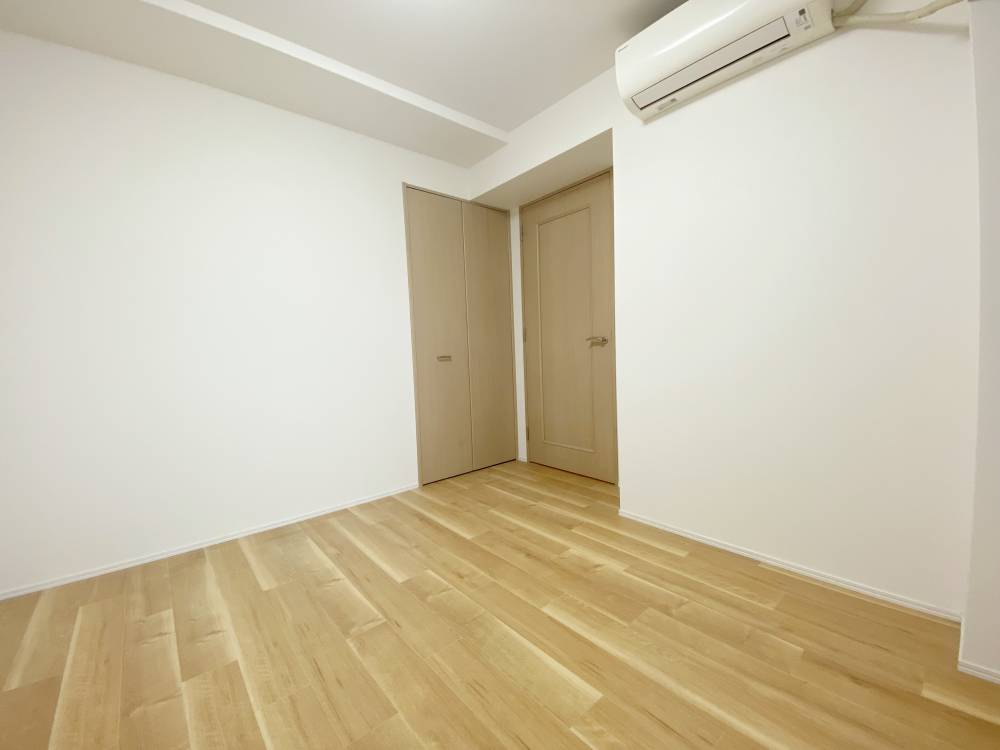 床にフロアタイルを貼り、壁の一部にアクセントクロスを取り…