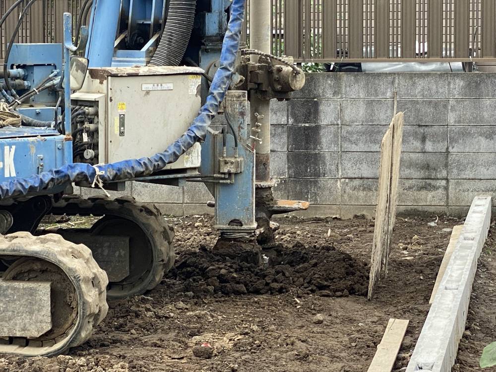 春日部の新築現場ですが、杭打ち工事が行われました。