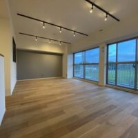 床にフロアタイルを貼り、壁の一部にアクセントクロスを取り…