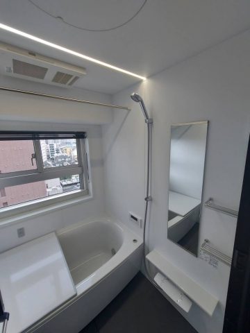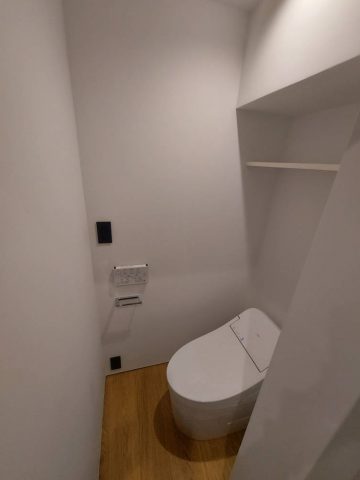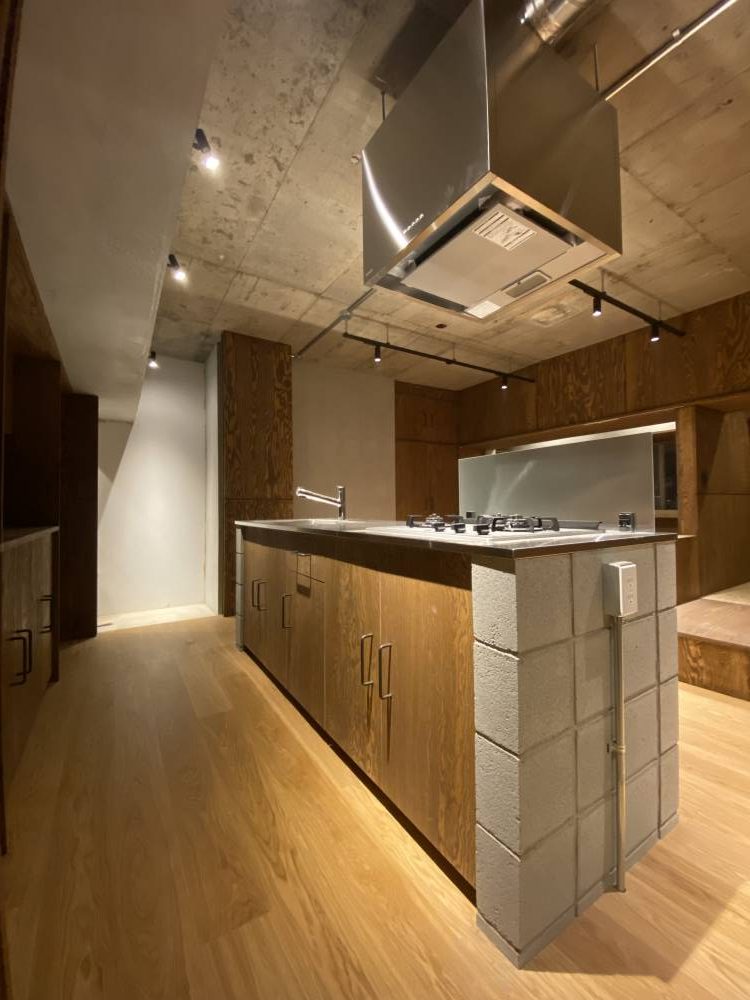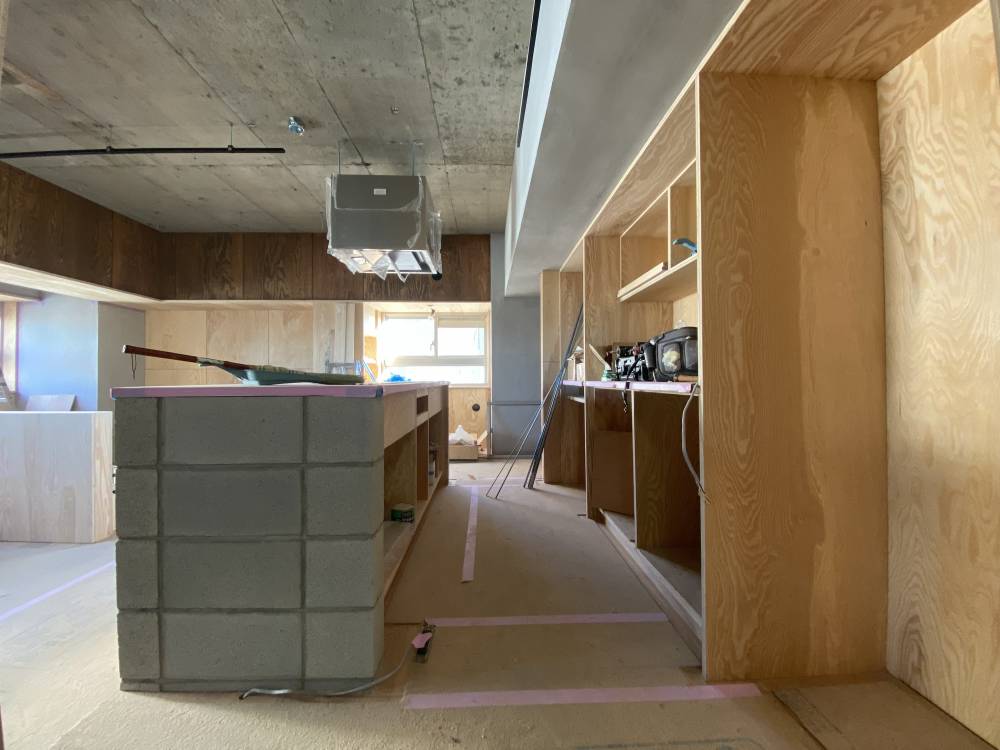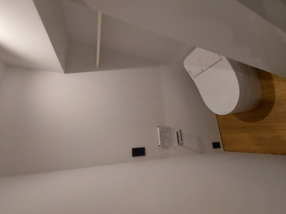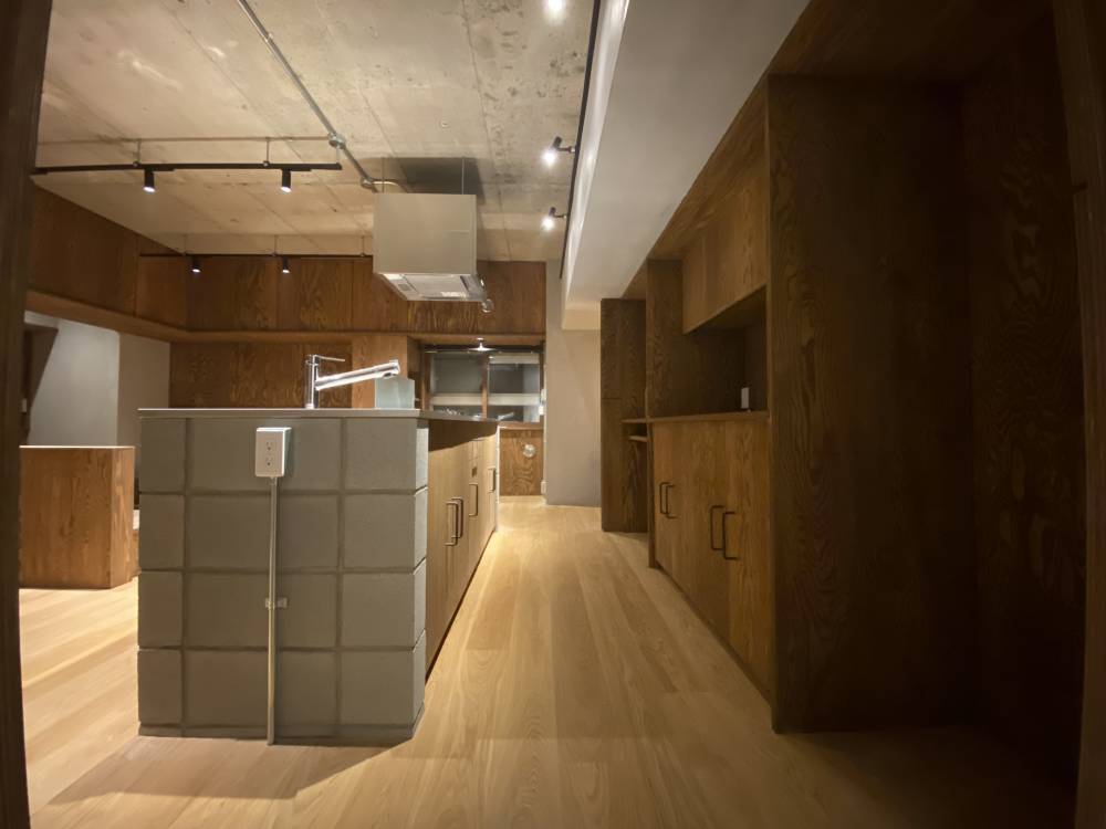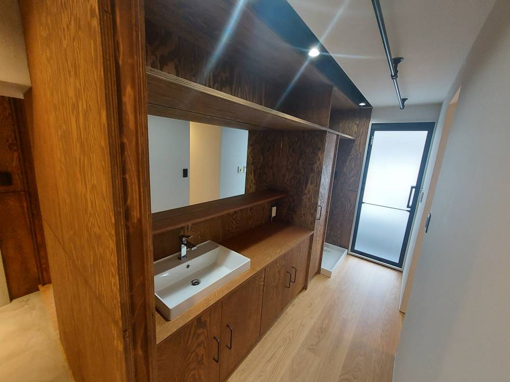 床にフロアタイルを貼り、壁の一部にアクセントクロスを取り…
