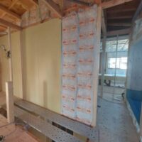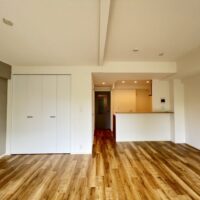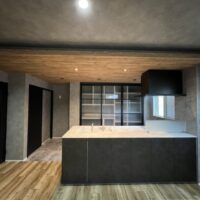床にフロアタイルを貼り、壁の一部にアクセントクロスを取り…