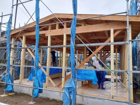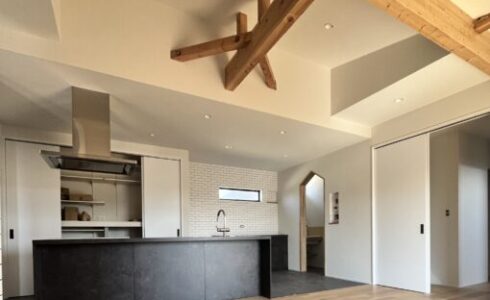 床にフロアタイルを貼り、壁の一部にアクセントクロスを取り…