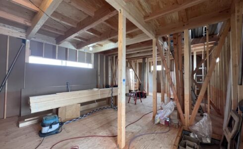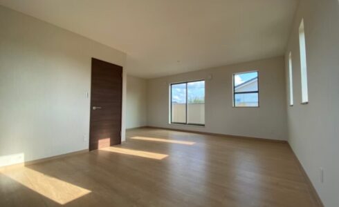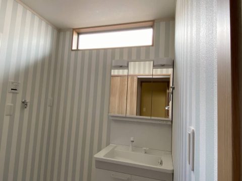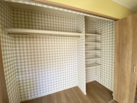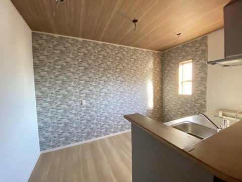 床にフロアタイルを貼り、壁の一部にアクセントクロスを取り…