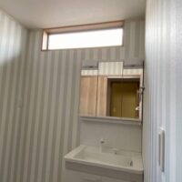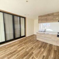 床にフロアタイルを貼り、壁の一部にアクセントクロスを取り…