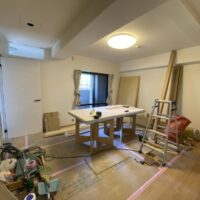 床にフロアタイルを貼り、壁の一部にアクセントクロスを取り…