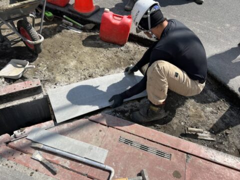 床にフロアタイルを貼り、壁の一部にアクセントクロスを取り…