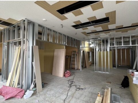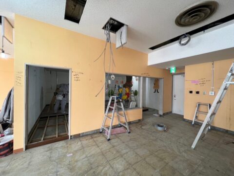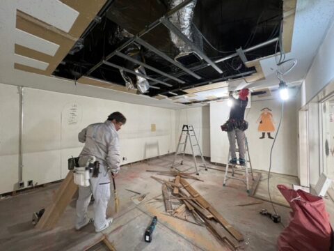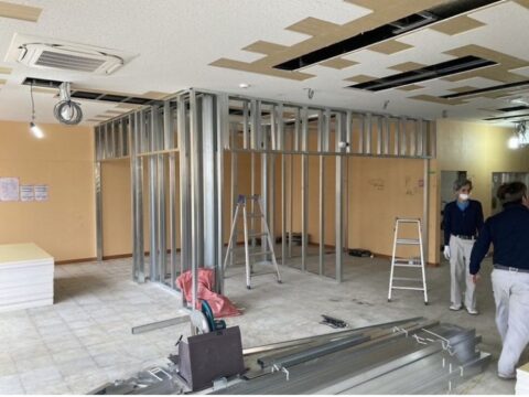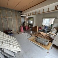 床にフロアタイルを貼り、壁の一部にアクセントクロスを取り…