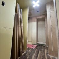 床にフロアタイルを貼り、壁の一部にアクセントクロスを取り…
