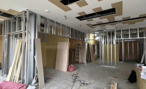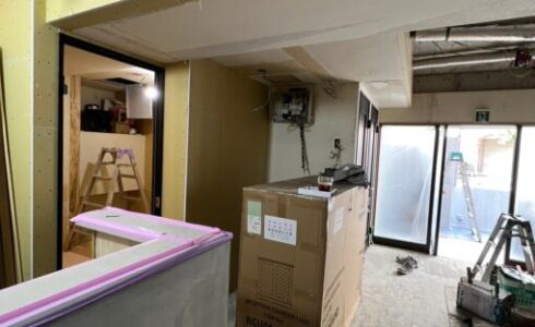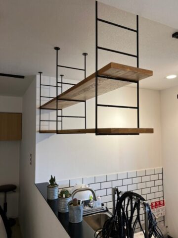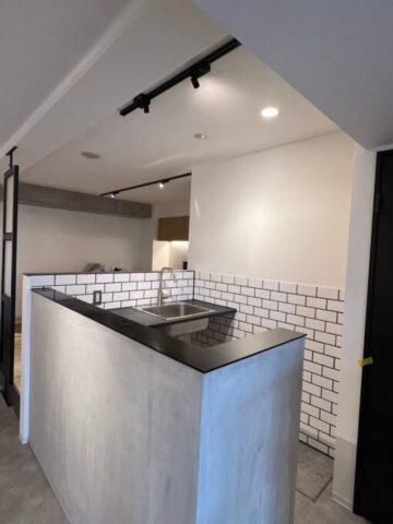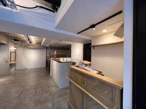 天井の躯体現しとカウンターやシャンプー台スペースの