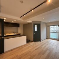 床にフロアタイルを貼り、壁の一部にアクセントクロスを取り…